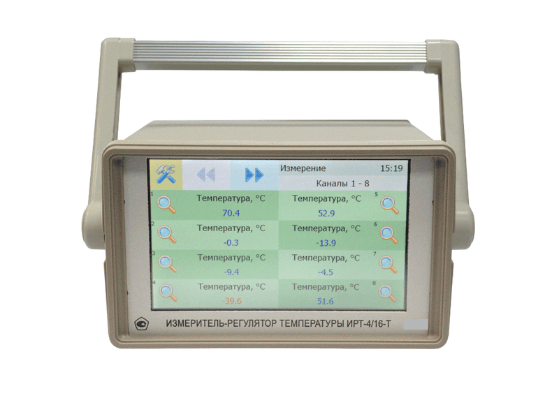 | 3 | ИРТ-4/16-Т-16А c 16 аналоговыми выходами, без термопреобразователей. Многоканальный измеритель-регулятор с графическим сенсорным дисплеем размером 7 дюймов. Интерфейсы связи с ПК - USB, RS-232, RS-485, Ethernet с возможностью управления. Класс точности - 0,25. Прибор позволяет одновременно по 16 каналам измерять, регулировать, регистрировать температуру воздуха и/или других неагрессивных газов и/или жидкостей, а также измерять, регулировать постоянное напряжение и постоянный ток в различных технологических процессах. Прибор может комплектоваться термопреобразователями различного конструктивного исполнения. Зонды соединяются с прибором кабелем длиной 1,5 м (возможно удаление до 100 м). Комплект поставки: прибор, крепежные элементы, РЭ и паспорт, госповерка блока по напряжению + термопреобразователь (по отдельному заказу) | 45 960 |